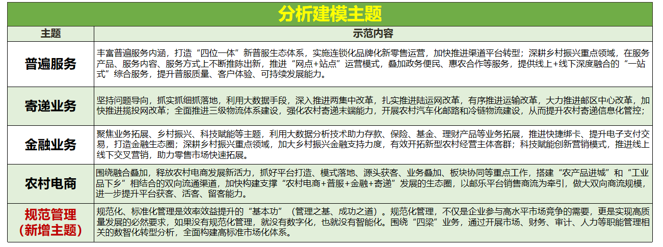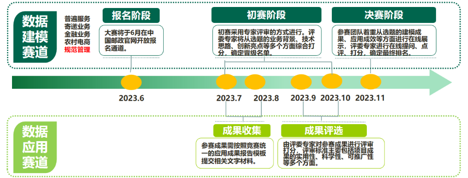 參賽團(tuán)隊(duì)可圍繞大賽指定的“普遍服務(wù)、寄遞業(yè)務(wù)、金融業(yè)務(wù)、農(nóng)村電商、規(guī)范管理”五大主題,結(jié)合業(yè)務(wù)實(shí)際需求,開(kāi)展分析建模及拓展,并通過(guò)ppt、線上答辯方式介紹方案思路及建模流程。