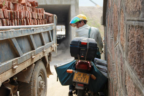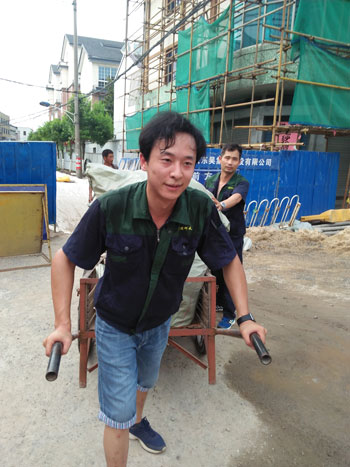 道路施工,手推車先行。