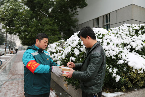 大雪中,黨員投遞在一線。
