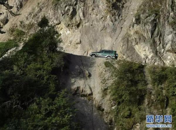 在崎嶇陡峭的山路上,亞林駕駛郵車由縣城趕往乃堆拉哨所投遞、交換郵件。