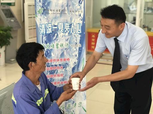 此外,在羅光明的建議下,淮南市分行以網(wǎng)點(diǎn)為依托,建立了19個(gè)“怡心小站”為戶外工作者和當(dāng)?shù)厝罕娝颓鍥觯_光明經(jīng)常會(huì)邀請(qǐng)環(huán)衛(wèi)工人、執(zhí)勤民警、快遞員、外賣(mài)員等前往“怡心小站”休憩并送上解暑茶水。“如今到郵儲(chǔ)銀行辦業(yè)務(wù),碰到下雨天還可以免費(fèi)借傘,這里的服務(wù)太周到了。”王女士由衷地感慨。不僅在酷熱天氣為辛苦奔波的戶外工作者送清涼,羅光明還在網(wǎng)點(diǎn)配備了誠(chéng)信便民傘。每到下雨天,在淮南市的大街小巷上,一把把印有“中國(guó)郵政儲(chǔ)蓄銀行”的便民雨傘猶如一張張笑臉,一點(diǎn)一滴中溫暖著萬(wàn)千大眾。