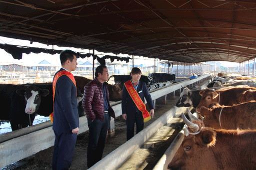 利津縣支行黨員來到鹽窩鎮(zhèn)鹽中村養(yǎng)牛場調查。