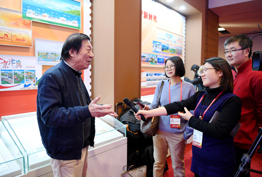 一說到郵票,兩位老者的話匣子就打開了?!班]票作為‘國家名片’,意義非常重大,但設計難度也大,一般來說,藝術家喜歡揮灑,喜歡在創作中發揮自己的想象力,但恰恰郵票設計具有嚴謹的科學性?!痹S仁龍介紹,在《長城》郵票中,地理方位一點都不能馬虎,長城的敵樓上有幾個射箭孔都要有出處、有講究;此外,郵票設計還要進行嚴謹的歷史考證,長城綿延一萬多公里,經過那么多省、市,沿途取景就需要仔細推敲,聽取專家意見,最終還要畫成一個藝術作品?!霸谠O計郵票時要充分體現藝術巧妙的融合性,要突破時空,令人有身臨其境之感,這又是一個難點。”時隔兩年,許仁龍回憶起郵票創作過程還是感受頗多,“長城是改革開放的一種精神象征,中國郵政將它繪制成郵票長卷是一種突破?,F在,這套郵票長卷在‘偉大的變革’展覽中展出,我深感榮耀和自豪,在此也要感謝改革開放給我們藝術創作帶來的新氣象?!?/p>