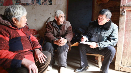 今年1月,殷勇到泗洪縣歸仁鎮(zhèn)村莊走訪調(diào)研獨生子女家庭養(yǎng)老問題。張成 攝