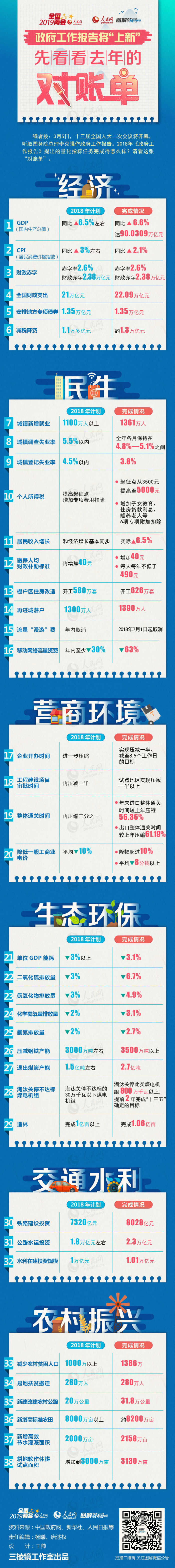 圖解:政府工作報告將“上新”,先看看去年的“對賬單”來源:人民網 發布時間:2019-03-04