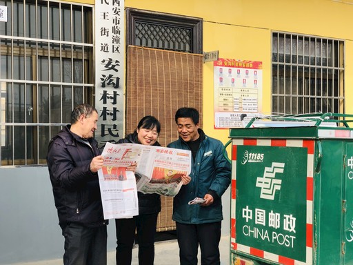 3月4日,陜西省西安市臨潼區郵政分公司投遞員將刊載有全國政協十三屆二次會議開幕報道的《陜西日報》《西安晚報》等報紙送到各個村委會,及時傳遞兩會聲音。