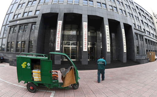 郵政快遞小哥來(lái)到共青團(tuán)中央等部門(mén)投送郵件。李旭昌 李巍 攝