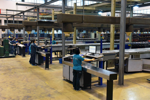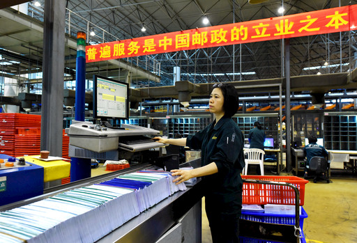 現(xiàn)代郵政自動化水平已經很高,但手工分揀仍然是必要和有益的補充,圖為郵件處理中心外景。