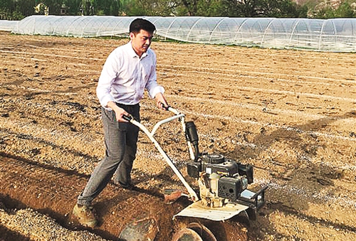 楊明在試驗田里起壟。中國郵政集團公司在商洛市扶貧20年來,全面整合企業資源,帶動貧困戶脫貧約2.3萬人。