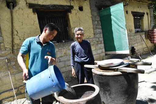 在董如德老人家里,孫吉?jiǎng)傁破鹕砼缘乃咨w子看了看,發(fā)現(xiàn)缸里的水已經(jīng)不多,自然地提起一旁的水桶,到附近水井里提了兩桶水上來。