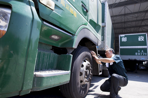 圍繞“戰(zhàn)高溫、保安全”的主題,南京郵區(qū)中心局結(jié)合夏季生產(chǎn)運(yùn)行特點(diǎn),近期開展了一系列車輛巡檢工作,確保行車安全。圖為該中心局干線班副班長劉毅正頂著炎熱對(duì)出班郵車進(jìn)行檢修。 □徐行 攝影報(bào)道