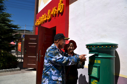 一位退役老軍人在紅色主題郵局寄出了有意義的明信片。