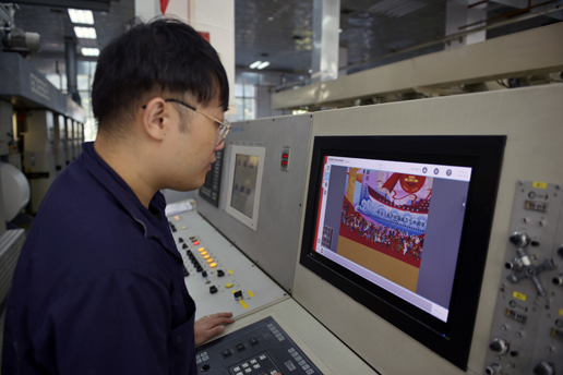 北京郵票廠工作人員謹慎地操作著設備,力求將郵票完美呈現。邸亞崢 攝