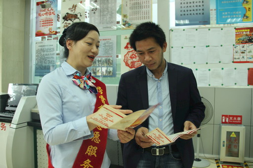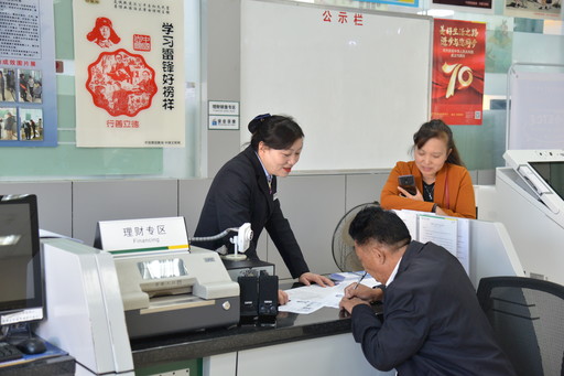 顧朝竹悉心為客戶(hù)辦理財(cái)產(chǎn)品購(gòu)買(mǎi)登記手續(xù)。