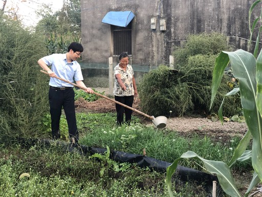 胡博為當?shù)剞r(nóng)戶灌溉菜地,將暖心服務送至田間地頭。