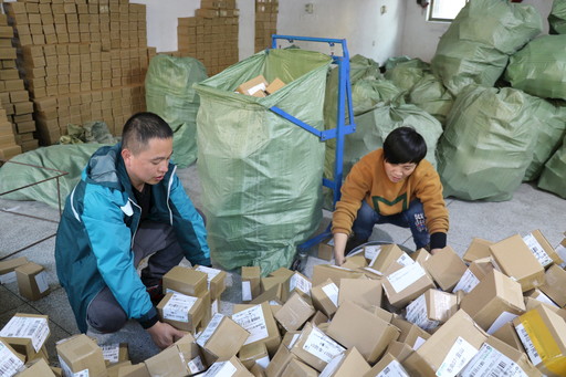 為了將包裹及時(shí)運(yùn)送到處理中心,武義縣寄遞事業(yè)部快包部員工動(dòng)員家屬齊上陣。11月11日深夜,共有24位攬收員家屬參與了包裹攬收工作。1點(diǎn)30分,快包部“準(zhǔn)加盟制”經(jīng)理廖揚(yáng)春和攬收員分別帶著他們的家屬來到大客戶柯小林的辦公地點(diǎn),對(duì)包裹進(jìn)行裝袋、裝車,他們動(dòng)作嫻熟,一刻都不懈怠,不一會(huì)兒豆大的汗珠就從額頭上落了下來。“原來我還擔(dān)心今年‘雙11’業(yè)務(wù)量這么大,郵政的攬收速度會(huì)比往年慢,沒想到你們連家屬都用上了,速度杠杠的,真讓我大吃一驚。”柯小林夸贊道。