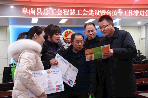 1月8日,郵儲(chǔ)銀行安徽省阜南縣支行聯(lián)合縣總工會(huì),舉行了智慧工會(huì)建設(shè)暨會(huì)員卡工作推進(jìn)會(huì)。該會(huì)員卡免費(fèi)向全縣工會(huì)會(huì)員發(fā)放,集工會(huì)幫扶服務(wù)、優(yōu)惠購(gòu)物消費(fèi)、金融理財(cái)?shù)榷喾N功能于一體,持此卡可享受一元洗車、一元觀影、超市滿減、節(jié)日惠等優(yōu)惠。截至目前,該會(huì)員卡已發(fā)放2000張。圖為阜南縣支行工作人員在推介會(huì)員卡。□劉華武 張晨曦 攝影報(bào)道