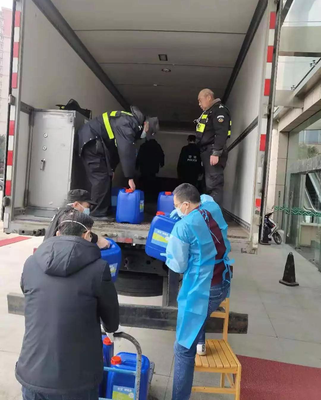 科技公司已經下班,只留下2名員工,阜寧郵政的4名員工就成了主力,大家一起努力,花了3個小時總算將500箱10噸消毒液和一些醫護用品裝上了車。