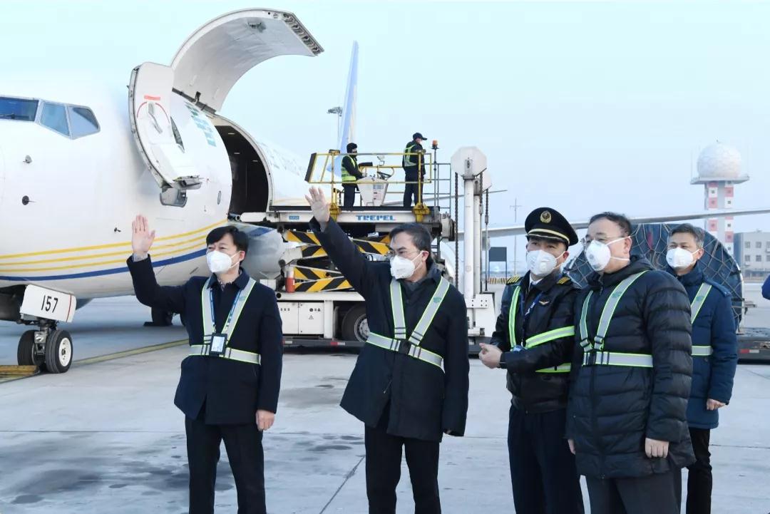 來到郵航停機(jī)位,馬軍勝、劉愛力詳細(xì)了解了郵航疫情防控和郵航執(zhí)飛防疫物資專機(jī)情況,詢問郵航飛機(jī)使用年限、裝載量等,察看了物資裝載和飛行準(zhǔn)備作業(yè)。登上飛機(jī),馬軍勝、劉愛力關(guān)切地詢問機(jī)組人員的身體狀況,叮囑機(jī)組人員一定要做好安全防護(hù),在確保個(gè)人安全的前提下,完成好專機(jī)執(zhí)飛任務(wù),確保將防疫物資及時(shí)、安全地運(yùn)達(dá)武漢疫情重災(zāi)區(qū)。看著專機(jī)緩緩滑向跑道,馬軍勝、劉愛力向執(zhí)飛機(jī)組揮手致意,并一直目送專機(jī)起飛。