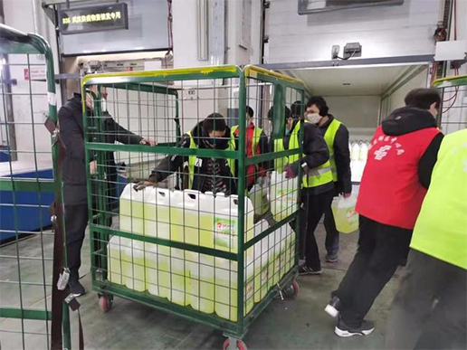 11點20分,一輛郵政卡車開了過來,車里裝載的一家愛心企業捐贈的1700桶84消毒液和100箱榨菜。這家企業于2月5日與北京郵區中心局取得聯系,郵局6日上午派專人專車將這批捐贈物資運到郵件綜合處理中心。東西運到,十幾名工人立即停下手里的活,跑到專用通道前,麻利地卸下貨物,暫放到捐贈物資存放專區。明天一早,這批物資就將裝車發往武漢。