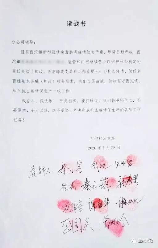 請戰書上,有郵政人11枚鮮紅的指印