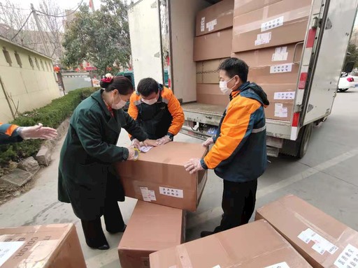 1月24日,臨沂商城一家口罩生產(chǎn)商需要緊急寄出4萬(wàn)余個(gè)口罩。臨沂市郵政分公司攬收員康振忠得知消息后,立即帶上家人和幾名快遞包裹攬收員直奔客戶處。他們通宵工作,協(xié)助打單、包貨,幫助客戶將所有郵件及時(shí)發(fā)出,并協(xié)調(diào)中心局及時(shí)做好分揀封發(fā)工作。隔天,臨沂市一商家亟須將一批醫(yī)療口罩寄往湖北省黃岡市,臨沂市分公司商城營(yíng)業(yè)部立即組成3人小分隊(duì)趕到客戶處,協(xié)助客戶裝箱、打包,共收寄17箱、近萬(wàn)個(gè)口罩。同日,羅欣藥業(yè)向疫區(qū)捐贈(zèng)抗病毒防護(hù)品300余箱,臨沂市分公司再次周密部署,全力保障防疫物資寄遞工作安全及時(shí)暢通。