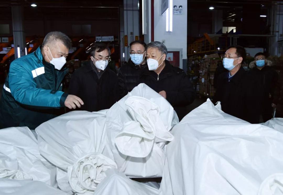 楊傳堂在北京郵件綜合處理中心了解了當前郵件快遞及捐助物資專車發運等工作,詳細詢問了郵件寄遞、員工返崗及防護物資配備等情況。