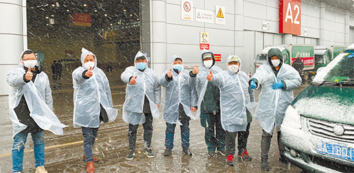 郵航直飛航班滿載防疫物資頂風冒雪抵達武漢天河機場。 楊衛東 提供