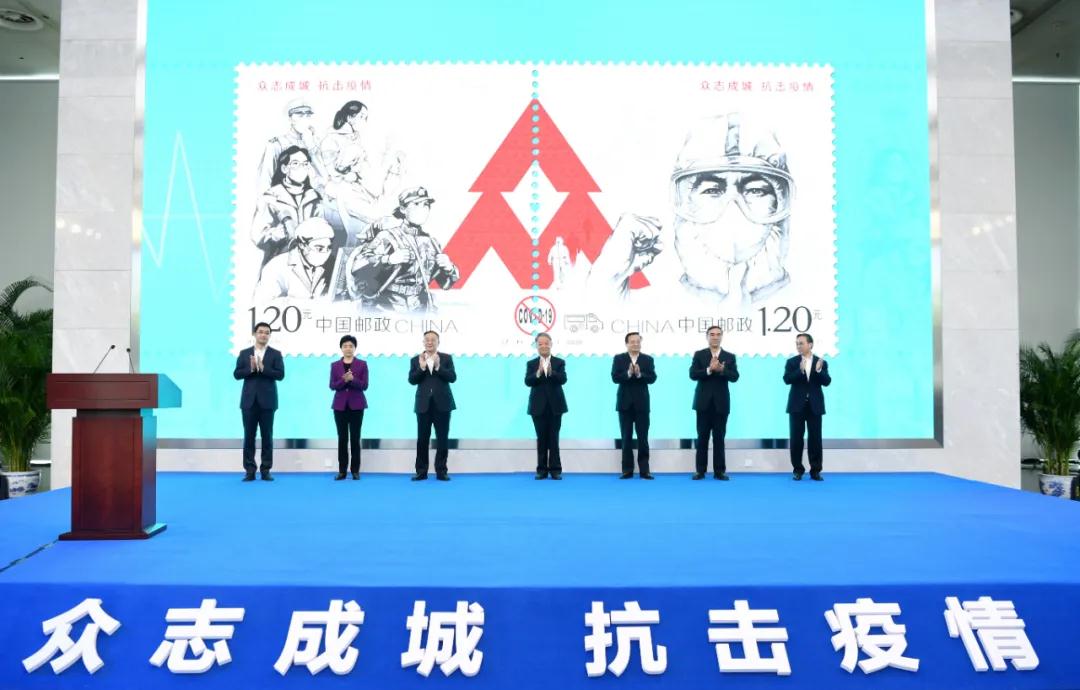 5月11日,國家郵政局和中國郵政集團有限公司共同舉辦的《眾志成城 抗擊疫情》特別發行郵票首發暨捐贈儀式在京舉行。該套郵票1套2枚,充分展示在以習近平同志為核心的黨中央堅強領導下全國人民眾志成城抗擊疫情的堅定決心,彰顯中國共產黨領導和中國特色社會主義制度的顯著優勢,宣傳疫情防控中展現出的中國力量、中國精神、中國效率,宣傳社會各界為抗擊疫情作出的巨大貢獻。