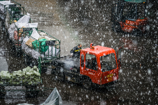 2月14日,北京市郵區(qū)中心局負(fù)責(zé)接發(fā)郵件的轉(zhuǎn)運分揀員正在風(fēng)雪中緊張地轉(zhuǎn)運處理封發(fā)郵件。為了讓捐贈物資快速送達(dá)武漢,北京中心局在分揀環(huán)節(jié)對防疫物資實施“三專”“五優(yōu)”工作機(jī)制,并開通兩個郵件接收垛口作為綠色通道,實行全程單獨處理。 □王笑波 攝
