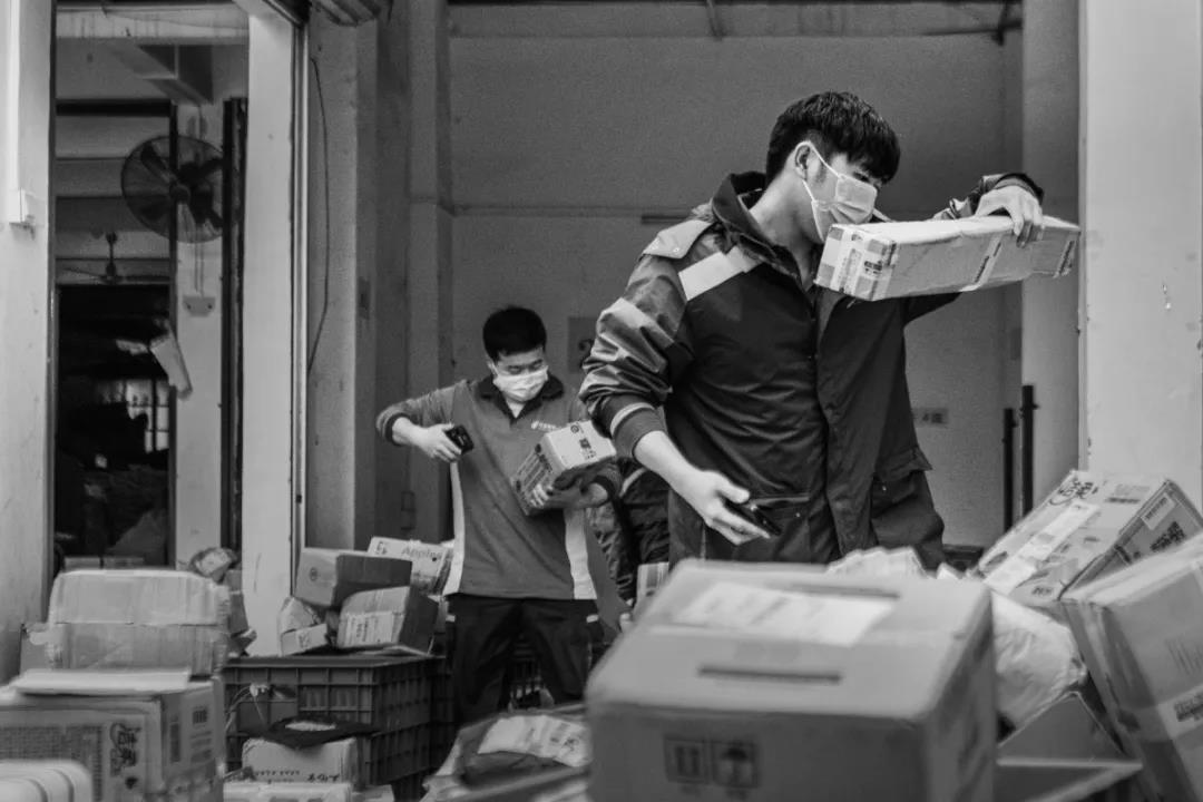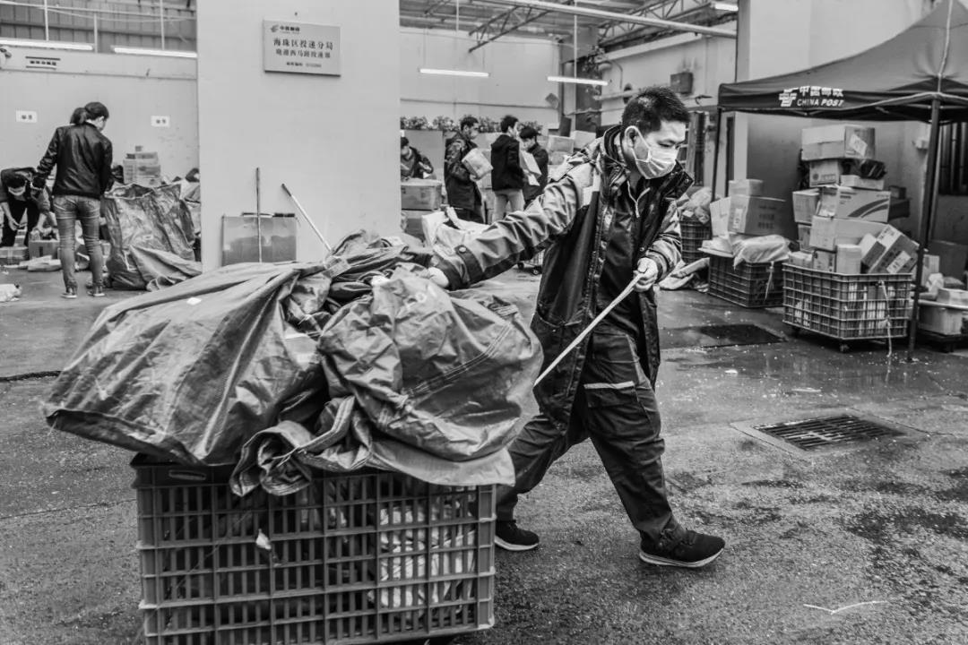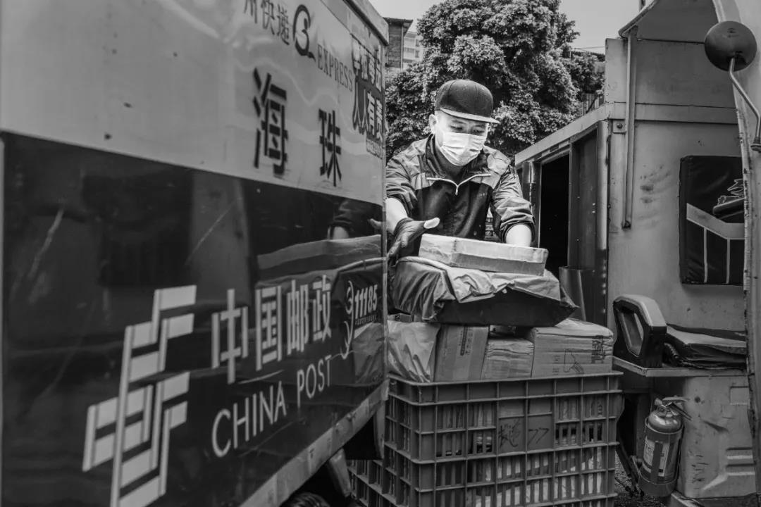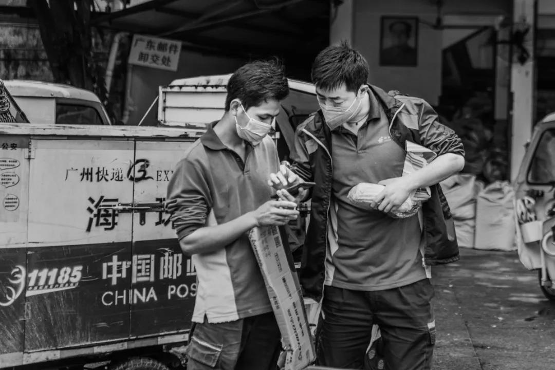 自疫情發生以來,廣州郵政人從沒有停止過為人民群眾派送郵件報刊,一直踐行著“人民郵政為人民”的神圣使命。作品拍攝于2020年3月廣州市郵政分公司曉港西馬路投遞部作業現場。