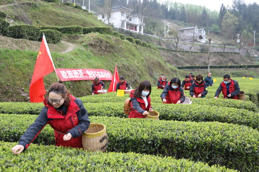 組織黨員幫茶農采春茶,湖北郵政助力農產品銷售呈現多維度、全方位的格局。向旭暉 攝