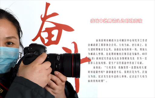 童莉是江蘇省徐州市郵政分公司郵區中心局黨務工作者,在疫情面前,她逆行而上,舍生忘死,奮戰在第一線,用鏡頭為郵政人塑像。疫情期間,她共有40多篇(條)新聞紀實作品先后在各級媒體上發表,在抗疫情、促生產宣傳報道中作出了應有的貢獻。□劉立明 攝