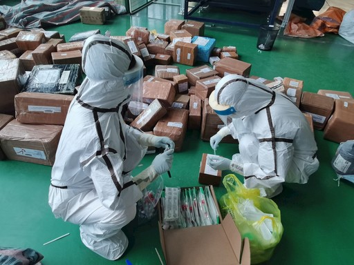 自6月8日零時起,安徽省合肥市成為北京國際客運航班第一入境點。合肥國際郵件互換局迅速應對,加強場地和人員防疫工作,確保進口郵件安全。圖為6月16日,合肥海關工作人員在現場對國際進口郵件進行核酸檢測。 □通訊員 凌云 記者 方懷銀 攝影報道
