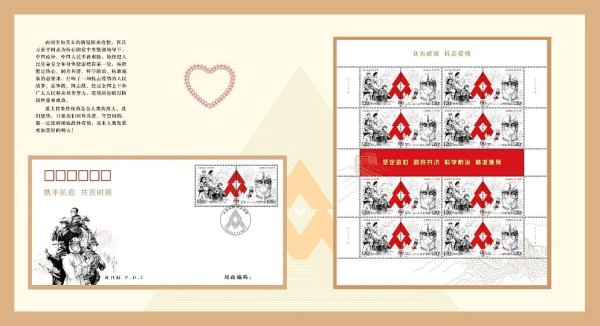 2020年5月11日,中國郵政集團有限公司發行了特11《眾志成城 抗擊疫情》郵票,通過“國家名片”講述了感人的中國抗疫故事,弘揚了偉大的中國精神,充分展現了在黨中央堅強領導下,舉國上下凝聚起眾志成城、抗擊疫情的強大力量。此次捐贈醫務工作者的定制郵折包含大版票、首日封,每個郵折都是唯一編碼,含有特制的個人抗疫紀念章,具有特殊紀念意義。