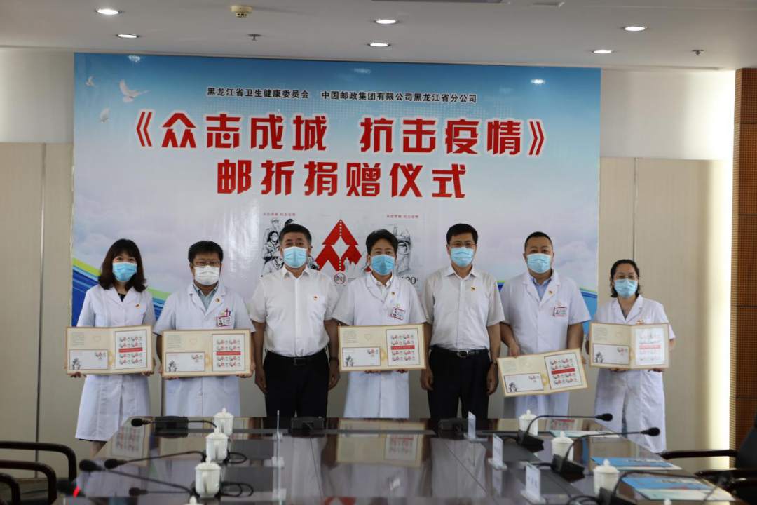 7月1日,黑龍江省郵政分公司與黑龍江省衛健委共同舉辦了《眾志成城 抗擊疫情》郵折捐贈儀式。此次捐贈活動,黑龍江省郵政分公司代表中國郵政集團向省衛健委捐贈郵折1654套(內含大版票、首日封),贈送給支援湖北、黑龍江省抗擊疫情一線的主要醫務人員、疾控人員。