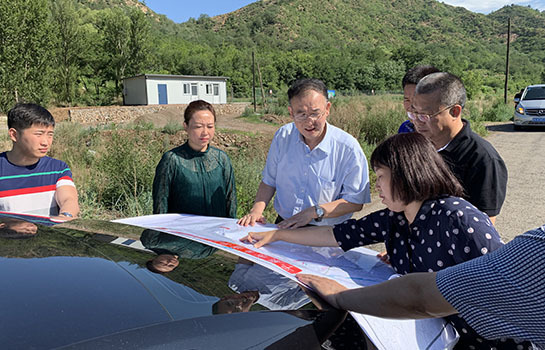 國(guó)家郵政局充分發(fā)揮“大部制”優(yōu)勢(shì),爭(zhēng)取到項(xiàng)目新增資金約1900萬元用于平泉市鄉(xiāng)道平廣線改線工程。這是作者 (中) 在現(xiàn)場(chǎng)調(diào)研公路建設(shè)工作。