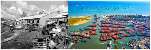 僑港今昔對比。 北海市銀海區僑港鎮人民政府供圖