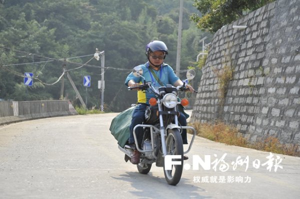 山路蜿蜒,少見車輛人影,只有藍盛金摩托車的轟鳴聲響徹山間。“幾乎每天都是一個人,路上只有鳥叫蟲鳴,只能哼哼歌排解內心的孤寂,這當中的苦只有自己知道。”48歲的藍盛金說,他是日溪鄉人,1993年開始做郵遞員,平均每天要走七八十公里,最遠的一趟來回要115公里,起初靠步行,挨家挨戶送,一年磨壞了3雙解放鞋,后來才有了自行車、摩托車等代步工具。