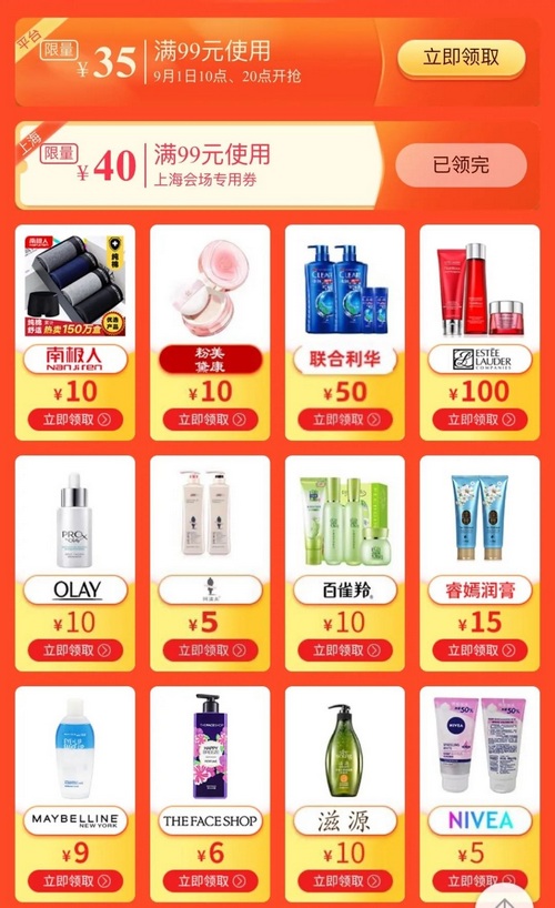 可領(lǐng)取50減10及30減5專場(chǎng)優(yōu)惠券