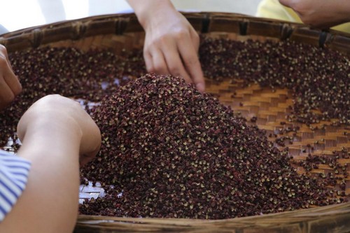 漢源椒農采摘花椒一般選在晴天,采收的椒果干制后,色澤鮮、香氣濃、麻味足。采收技巧也非常有講究,需一穗穗小心摘下,否則壓破花椒油胞,花椒干制后就色澤暗褐,香麻味減,影響花椒質量,可以說,每一粒精心采收的花椒里,都飽含著椒農對收獲的喜悅和珍惜。