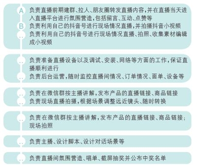 通過制作工作任務行動表和制作直播流程安排表進行人員安排,保證工作人員與直播環節緊緊相扣。