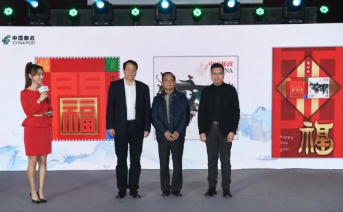 在2021辛丑年即將到來之際,今天(11月5日),中國(guó)郵政集團(tuán)有限公司在中國(guó)郵政郵票博物館舉辦2021年賀年有獎(jiǎng)明信片、賀年專用郵票發(fā)布會(huì),向社會(huì)發(fā)布以“生肖牛”為主題的普通明信片、極限明信片、祝福卡及2021年賀年專用郵票。本次發(fā)布會(huì)主題為心里“郵”你、為愛發(fā)光。中國(guó)郵政集團(tuán)有限公司黨組成員、副總經(jīng)理王儉,著名藝術(shù)家韓美林,郵票印制局設(shè)計(jì)總監(jiān)王虎鳴,清華大學(xué)美術(shù)學(xué)院博士生導(dǎo)師陳楠教授,南開大學(xué)東方藝術(shù)系副教授張旺,中國(guó)工藝美術(shù)協(xié)會(huì)會(huì)員武世寧,著名繪本畫家景紹宗,明信片文化創(chuàng)意設(shè)計(jì)大賽獲獎(jiǎng)?wù)叨窝沛肌⑴苏窭诩爸袊?guó)郵政集團(tuán)有限公司相關(guān)部門負(fù)責(zé)同志出席。王儉發(fā)表致辭,并與韓美林及與會(huì)嘉賓分別為賀年專用郵票小全張及明信片揭幕,與會(huì)嘉賓還分享了設(shè)計(jì)理念。