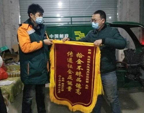 “您撿到包后及時(shí)歸還,我們非常感謝……”12月11日,拾金不昧的郵政快遞小哥王新,收到了失主李女士家人的當(dāng)面致謝以及一面致謝錦旗。