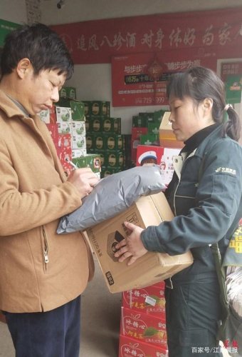 ▲肖冬蓮(右)正在派送包裹。