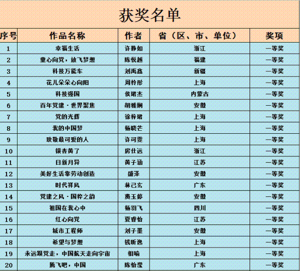 由中華全國集郵聯(lián)合會(huì)、中國郵政集團(tuán)有限公司、中國宋慶齡基金會(huì)共同主辦的“永遠(yuǎn)跟黨走 逐夢新時(shí)代”全國少年兒童郵票創(chuàng)作設(shè)計(jì)作品征集活動(dòng)圓滿結(jié)束。獲獎(jiǎng)作品名單已于2021年3月29日至2021年4月4日在主辦單位官網(wǎng)進(jìn)行了公示,未收到申訴與舉報(bào)。現(xiàn)將獲獎(jiǎng)名單予以公布。