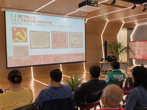 4月22日,閔行區(qū)第5季郵票黨課在閔行經(jīng)濟(jì)技術(shù)開(kāi)發(fā)區(qū)開(kāi)講,原上海汽輪機(jī)廠副總工藝師、高工吳天明為聽(tīng)眾帶來(lái)的是《黨徽、黨旗和黨章》,他的另一重身份是上海市集郵協(xié)會(huì)學(xué)術(shù)委員會(huì)委員、極限集郵研究會(huì)會(huì)長(zhǎng)、閔行區(qū)職工集郵愛(ài)好者協(xié)會(huì)副會(huì)長(zhǎng)。