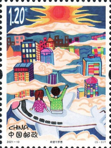 為慶祝中國共產黨成立100周年,中華全國集郵聯合會、中國郵政集團有限公司、中國宋慶齡基金會聯合舉辦了“永遠跟黨走逐夢新時代”全國少年兒童郵票創作設計作品征集活動。活動得到了全國各地少年兒童的積極響應,共征集作品18000余幅,涵蓋31個省(區、市)的261個地市。這些作品充分展現愛黨、愛國、民族大團結等時代主旋律以及人民的美好生活。經專家評審,共評出一等獎20名、二等獎46名、三等獎100名,其中3幅一等獎作品登上《兒童畫作品選》特種郵票,于6月1日發行,發行量為700萬套。