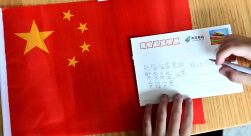 在明信片書(shū)寫(xiě)體驗(yàn)環(huán)節(jié),孩子們?cè)诿餍牌蠈?xiě)下對(duì)祖國(guó)的祝福、對(duì)黨的熱愛(ài)、對(duì)中國(guó)夢(mèng)的憧憬,并加蓋個(gè)性化紀(jì)念戳,將明信片投寄給老師、朋友或家人,銘記這份珍貴的紅色情懷。