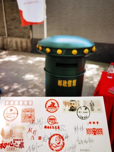 為紀念這一活動,西城區分公司設計推出了“初心之旅”紅色地圖發布紀念封一枚和紀念戳一套六枚。紀念戳分別在天橋印象博物館主會場,京報館(邵飄萍故居)、李大釗故居、西城紅墻意識黨性教育基地三處分會場提供紀念郵戳加蓋服務。